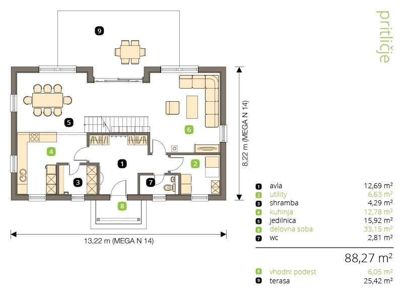 prizemlje montažne kuće Bellevue