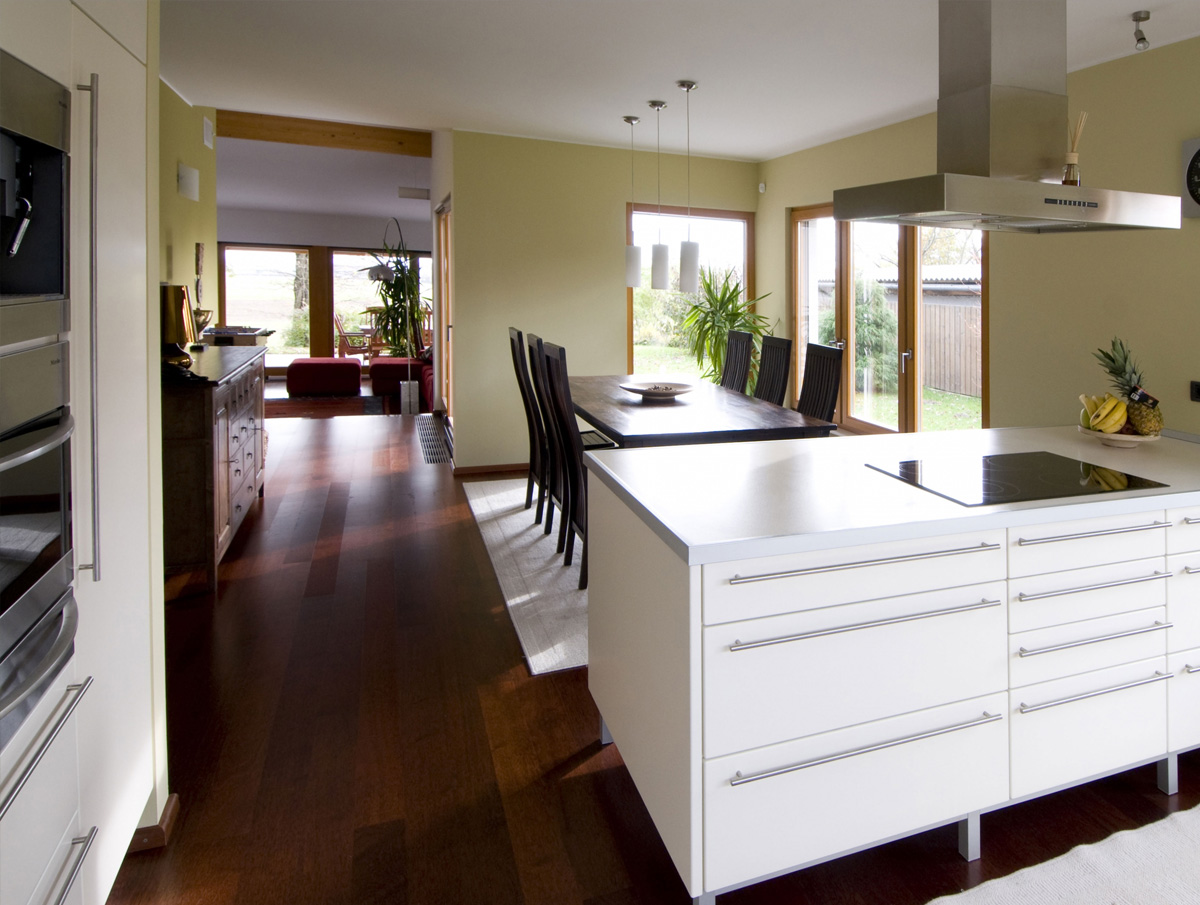 U prizemlju montažne kuće Altea M prostire se i prekrasna glavna spavaća soba s ulazom u privatnu garderobu i kupaonicu. U prizemlju se također nalazi prostrana kuhinja koja je spojena s blagavaonicom te pruža zadovoljstvo i ugodu u svakodnevnom boravku.